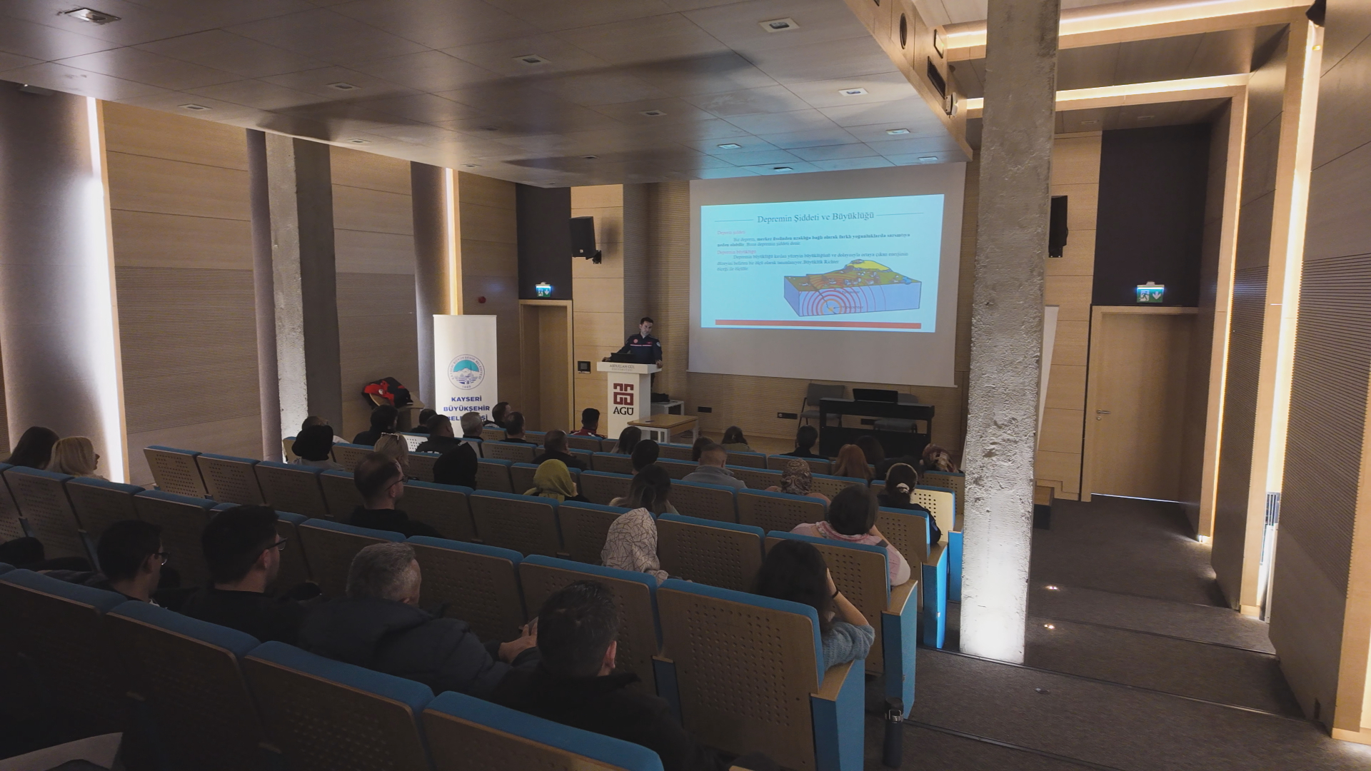 Bu kapsamda Büyükşehir Belediyesi Afet İşleri ve Risk Yönetimi Daire Başkanlığı ile İtfaiye Daire Başkanlığı iş birliğinde Abdullah Gül Üniversitesi’nde, afet farkındalık eğitimi düzenlendi. Abdullah Gül Üniversitesi Sümer Kampüsü’nde gerçekleşen eğitime akademisyenler, öğrenciler, yurt personeli, yurt idarecileri ve idari personel ile güvenlik görevlileri olmak üzere 70 kişi katıldı.