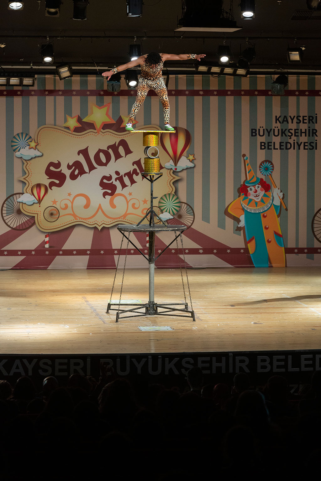 Kayseri Büyükşehir Belediyesi her hafta sahnelenen çocuk oyunlarının yanı sıra öğrencilere bir karne hediyesi daha verdi. Kültür sanat etkinlikleri çerçevesinde Kayseri’ye gelen Salon Sirki’nin gösterilerine çocuklar kadar büyükler de ilgi gösteriyor. Büyükşehir Belediyesi, sömestr tatilinde bulunan çocukları farklı etkinliklerle buluşturmaya devam ediyor. Kültür Sanat etkinlikleri kapsamında Kayseri’ye gelen Salon Sirki Kadir Has Kültür Sanat Merkezi’ndeki gösterilerine başladı. 120 dakika süren sirkte heyecan verici gösteriler sergileniyor. Müthiş akrobatlar, palyaçolar, illüzyon gösterisi, balans show, merdiven şov ve daha pek çok gösteri salonu dolduranlar tarafından heyecanla izleniyor. Dört günlük gösteri için Kayseri'ye gelen Salon Sirki her gün üç seans halinde izleyicilerle buluşuyor. Hafta sonu da devam edecek olan gösteriler saat 13.00, 16.00 ve 19.00’da izlenebiliyor. Gösteriler Büyükşehir Belediyesi’nin diğer kültür sanat etkinlikleri gibi ücretsiz olarak vatandaşlarla buluşuyor.