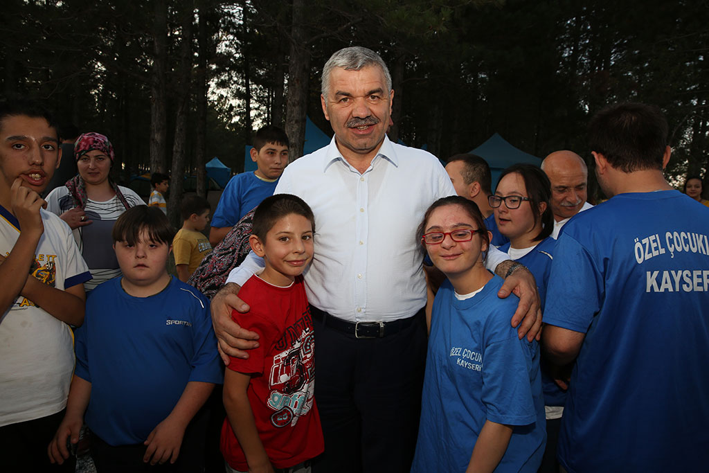 Büyükşehir Belediyesi, sosyal belediyecilikte öncülükler yapmaya devam ediyor. Büyükşehir Belediyesi Spor A.Ş. tarafından düzenlenen doğa kamplarının bu kez konukları özel çocuklar oldu. Down sendromlu çocuklar ve aileleri için gerçekleştirilen kampı Büyükşehir Belediye Başkanı Mustafa Çelik de AK Parti Kayseri Milletvekili İsmail Tamer ile birlikte ziyaret etti. Büyükşehir Belediyesi özel durumları nedeniyle sosyal etkinliklere katılmakta zorluk çeken çocuklarımız için farklı etkinlikler gerçekleştirmeye ve onların aileleri ile mutlu anlar yaşamalarını sağlamaya devam ediyor. Bu anlamda Büyükşehir Belediyesi Spor A.Ş. tarafından özel çocuklar için Sarımsaklı Barajı’nda gerçekleştirilen kampa Büyükşehir Belediye Başkanı Mustafa Çelik ile AK Parti Kayseri Milletvekili İsmail Tamer de katıldı. GÖNÜLLERE GİREN HİZMET Down Sendromlu çocuklarımız için düzenlenen kampa 48 özel çocuğumuz aileleriyle birlikte katıldı. Çocukların eğitmenlerinin de iştirak ettiği yaklaşık 100 kişilik kampta birbirinden renkli etkinlikler gerçekleştirildi. Survivor, okçuluk, oryantiring, voleybol, masa tenisi, bilek güreşi gibi aktivitelerin yapıldığı kampta özel çocuklar aileleriyle birlikte mutlu anlar yaşadı. Büyükşehir Belediye Başkanı Mustafa Çelik, tüm ailelerle ve özellikle çocuklarla yakından ilgilendi. Çocukların katıldığı etkinlikleri izleyen, onlarla sohbet eden Başkan Çelik, özel çocukların sıcacık sevgisiyle karşılaştı. Akşam üzeri ateş başında toplanan kampçılara hitap eden Başkan Mustafa Çelik, özel çocuklarımızın herkesin kalbinde özel bir yeri olduğunu belirtti. Çocukların daha fazla sosyal ortamlara katılabilmeleri için ellerinden gelen gayreti göstermeye ve farklı etkinlikler gerçekleştirmeye devam edeceklerini ifade eden Başkan Çelik, gönülleri sevgi dolu özel çocuklarla bir arada olmaktan mutluluk duyduğunu söyledi. AK Parti Kayseri Milletvekili İsmail Tamer de bu tür etkinliklerin özel çocukların gelişimine çok büyük faydalar sağlayacağını belirtti ve böylesine güzel organizasyonlar nedeniyle Büyükşehir Belediyesi’ni tebrik etti. Özel çocuklarımız, kampta açık hava sineması izleyerek ve ateş başında canlı müziğe eşlik ederek unutamayacakları anlar yaşadılar.