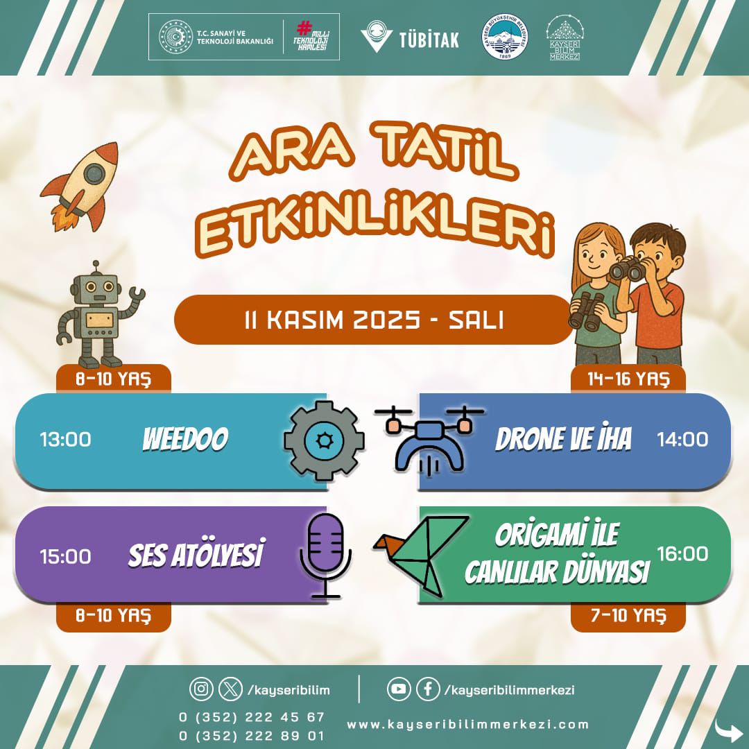 Detaylı bilgi ve kayıt için Kayseri Bilim Merkezi sosyal medya hesapları takip edilebilecek.