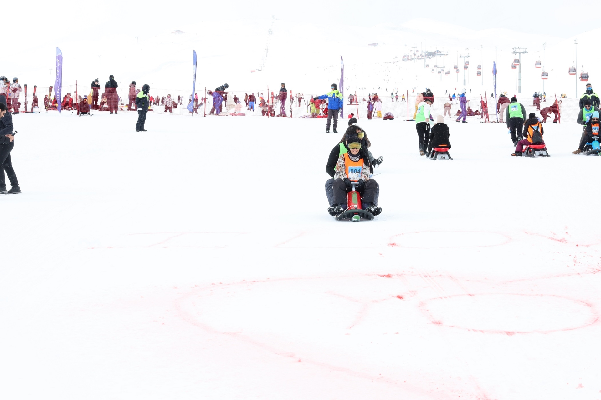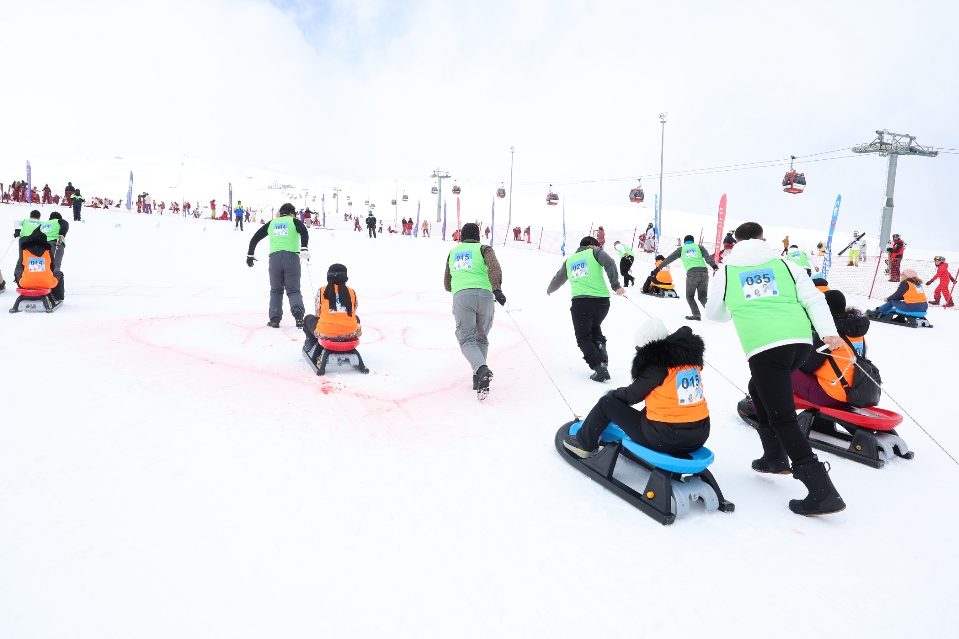 Erciyes Tekir Kapı bölgesinde yapılan yarışmaya farklı şehirlerden 10 çift katıldı. Yarışmada çiftler önce kızakla birbirlerini çekti, ardından hiç ara vermeden birlikte kızakla kayarak bitiş noktasına ulaşmak için mücadele etti. Heyecan, spor ve eğlencenin bir arada yaşandığı organizasyonda çiftler parkuru en kısa sürede tamamlamak için kıyasıya yarıştı.