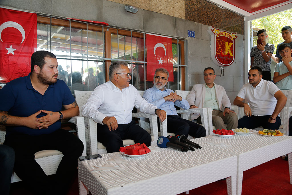 Kayseri Büyükşehir Belediye Başkanı Dr. Memduh Büyükkılıç, Önceki Dönem Enerji ve Tabi Kaynaklar Bakanı Taner Yıldız ile birlikte Kapalı Kale Kayserispor Taraftarlar Derneği’ni ziyaret etti. Başkan Büyükkılıç, ziyarette “El ele gönül gönüle Kayserispor’umuza sahip çıkmaya ve destek vermeye devam edeceğiz” dedi. Başkan Büyükkılıç, Kayserispor için başlatılan “Kırmızıya Sarı Ol” kampanyasına da değindi ve kampanyaya destek istedi. Mimarsinan Parkı’nda bulunan Büyükşehir Belediyesi’ne ait depo gerekli düzenlemeler yapılarak Kapalı Kale Kayserispor Taraftarlar Derneği’nin kullanımına sunuldu. Büyükşehir Belediye Başkanı Dr. Memduh Büyükkılıç, Önceki Dönem Enerji ve Tabi Kaynaklar Bakanı Taner Yıldız ile birlikte Kapalı Kale Taraftarlar Derneği’ni yeni dernek merkezinde ziyaret etti. Kayseri’nin havasını soluyan herkesin Kayserispor’a destek vermesi gerektiğini ifade eden Başkan Memduh Büyükkılıç, “Kayserispor olmazsa olmazımız. Kayseri’mizin en önemli markası. Bu anlamda her zaman yanındayız. Sıkıntısı sıkıntımız, sevinci sevincimiz. Şehrimizi en iyi şekilde temsil etmek için gayret gösteren Kayserispor yönetimine, hocamıza ve oyuncularımıza teşekkür ediyorum. Takımımızı diri tutan taraftarlarımız. Taraftarın motivasyonu çok önemli. Kayseri’nin havasını soluyan, bu şehrin imkanlarından faydalanan herkesin Kayserispor’a sahip çıkması lazım” dedi. “Kırmızıya Sarı Ol” kampanyasına da değinerek destek isteyen Başkan Büyükkılıç, “Her kardeşimizin gerekli desteği vermesi gerekir. Biz de 100 tişörtü aldık ve çekilişle taraftarlara dağıtıyoruz. Bu arada bakarsınız kampanyaya bir destek daha veririz” diye konuştu. Kapalı Kale taraftarlar Derneği’ni verdikleri yerle ilgili de konuşan Başkan Büyükkılıç, “Kayserispor’un en güzel şekilde temsil edilmesi bizim için önemliydi. Bunu sağladık. El ele gönül gönüle Kayserispor’umuza her yönüyle sahip çıkmaya devam edeceğiz” dedi. Önceki Dönem Enerji ve Tabi Kaynaklar Bakanı Taner Yıldız da böylesi güzel bir mekanı ve güzel bir uğrak yerini taraftarlara kazandırdığı için Büyükşehir Belediye Başkanı Memduh Büyükkılıç’a teşekkür etti. Kayserispor’a herkesin omuz vermesi gerektiğini ifade eden Yıldız, “Her birimiz bu yükü omuzlamalıyız. Süper Ligde Kayserispor’un kendisine yakışır yere gelmesi için çalışmalarımız devam ediyor. Büyüyen Kayseri’nin küçülen sportif faaliyetleri olmaz. Taraftarlarımızın da desteği ile Kayserispor hak ettiği sonuçları alacaktır” diye konuştu. BAKAN YILDIZ’DAN KAMPANYAYA DESTEK Bu arada Başkan Memduh Büyükkılıç, Bakan Yıldız’dan da Kayserispor için başlatılan kampanyaya 100 tişört ile destek istedi. Bakan Yıldız da Başkan Büyükkılıç’ın isteğine olur vererek kampanyaya 100 tişört ile katıldı. Kapalı Kale Taraftarlar Derneği Başkanı Ahmet Dirgenali de yaptığı açıklamada yeni dernek binasının tahsisi için Başkan Memduh Büyükkılıç’a teşekkür etti. Taraftarlara çok güzel bir ortam sağlandığını ifade eden Dirgenali, “Biz de buna layık olarak Kayserispor’umuza yakışacak işler yapacağız. Forma kampanyasına katılımınız için de çok teşekkür ediyoruz” dedi.